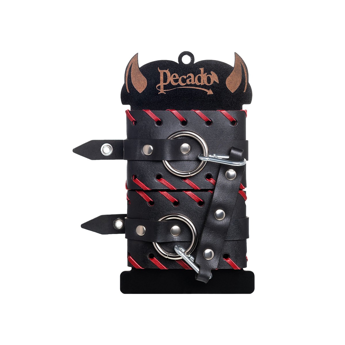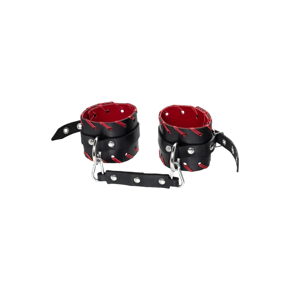 Готовы играть по-взрослому? Не бойтесь своих желаний! Основатели бренда уверены: лучший способ избавиться от искушения - поддаться ему! Добавьте пикантную деталь в ролевую игру и воплотите самую смелую сексуальную фантазию в реальность! Двухслойные кожаные оковы с окантовкой красного цвета, могут стать стильным аксессуаром на «свободных» руках, но могут послужить вашим целям и фантазиям по своему прямому назначению. Наличие двух карабинов и колец позволяет использовать изделие как раздельно – аксессуар-манжеты, так и как наручники для фиксации. К широким металлическим кольцам также можно присоединить и другие аксессуары при помощи карабинов. Благодаря универсальному размеру наручники могут использоваться и мужчинами, и женщинами. Размер легко регулируется с помощью металлических пряжек, органично вписывающихся в общий стиль. Длина манжет - 25 см, ширина манжет - 6,5 см. Длина сцепки - 20 см.