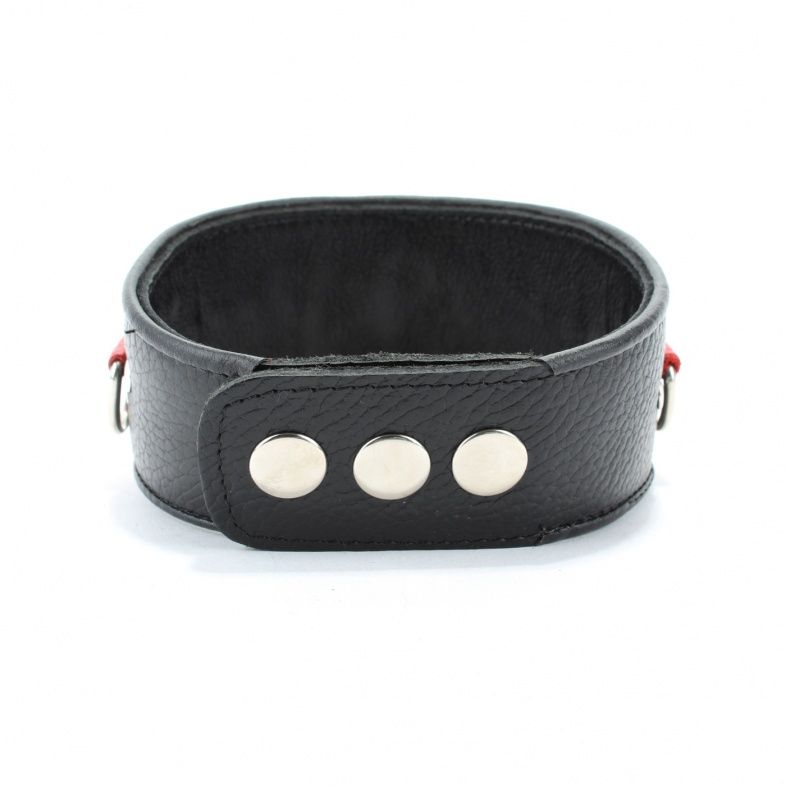 Изготовлен из натуральной кожи с металлическими заклепками. Размер универсальный. Кожаный ошейник - это один из основных атрибутов BDSM.